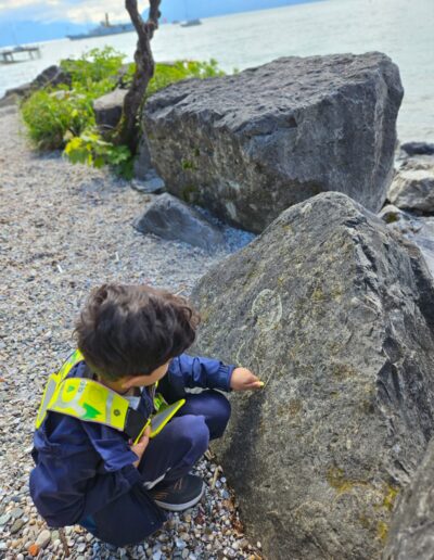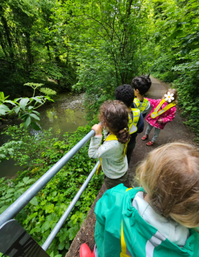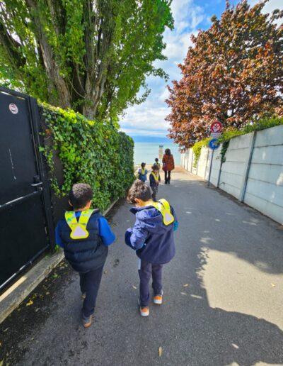 Nos activités d’apprentissage ne se limitent pas à la salle de classe. Nous profitons des parcs locaux, du lac, des aires de jeux, des installations publiques telles que les excellentes piscines locales, des musées, des excursions dans la nature et des nombreux sentiers de promenade et de randonnée.